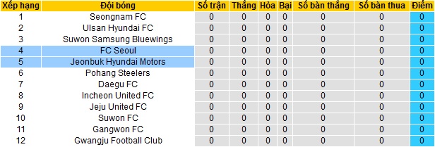 Bảng xếp hạng giải VĐQG Hàn Quốc