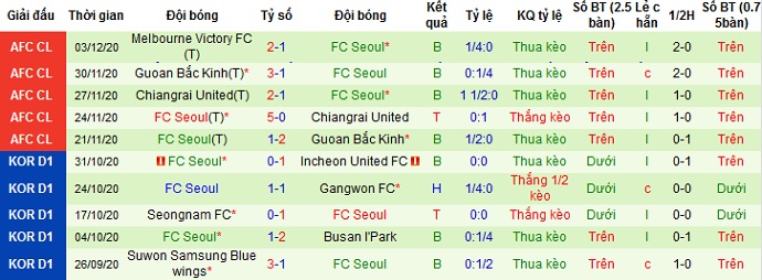 Trong 5 trận đấu gần nhất tại K-League, FC Seoul chỉ thắng 1, hòa 1 và để thua 3. Thành tích sân khách của đội bóng cũng chẳng tốt hơn khi ở 5 lần du đấu gần nhất kết quả cũng tương tự.