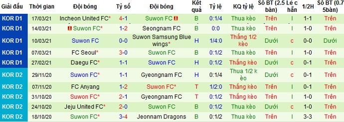 + Thống kê 10 trận gần nhất của Suwon FC