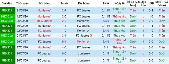 Thế nhưng trong cả 2 lần gặp nhau trước đó khi Juárez thi đấu trên sân nhà họ đều giành chiến thắng. Ngoài ra đội bóng cũng đang có thành tích bất bại trên sân nhà trong khi thành tích du đấu của Monterrey không thật tốt nên chọn cửa dưới ở trận đấu này là hoàn toàn hợp lý.