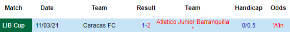 + Soi tỷ lệ kèo châu Á: Dù được đánh giá cao nhưng kèo chấp 1 1/4 ẩn chứa nhiều rủi ro với Junior Barranquilla. Thực tế là đại diện của Colombia chơi khá thất thường thời gian gần đây với 3/4 trận thua kèo vừa qua. Trong khi ấy thì Caracas thi đấu không tệ trên sân khách với 2 trận thắng kèo mới nhất.