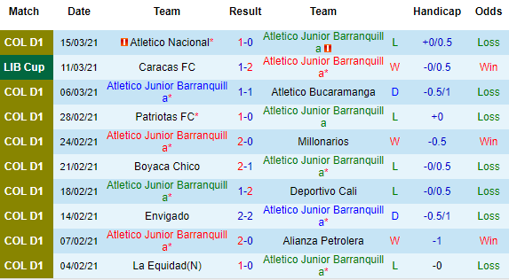 + Thống kê 10 trận gần nhất của Junior Barranquilla