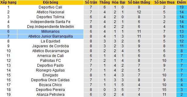 Hiện Millonarios đã kém đội dẫn đầu Derpotivo Cali tới 7 điểm mặc dù vẫn đang thi đấu ít hơn 2 trận. Trong khi đó cả hai đội đều bị các đôi phía sau bám rất sát khi Junior Barranquilla chỉ còn hơn đội nằm ngoài Top 8 có 2 điểm.