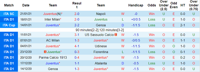 Chuỗi 3 chiến thắng liên tiếp của Juventus đã bị chặn đứng bởi Inter Milan (Juventus thua với tỷ số 0-2). Tuy nhiên, Bà đầm già đã phản ứng đầy mạnh mẽ bằng cách đánh bại Napoli với tỷ số tương tự ở trận tranh Siêu Cúp Italia 2020.