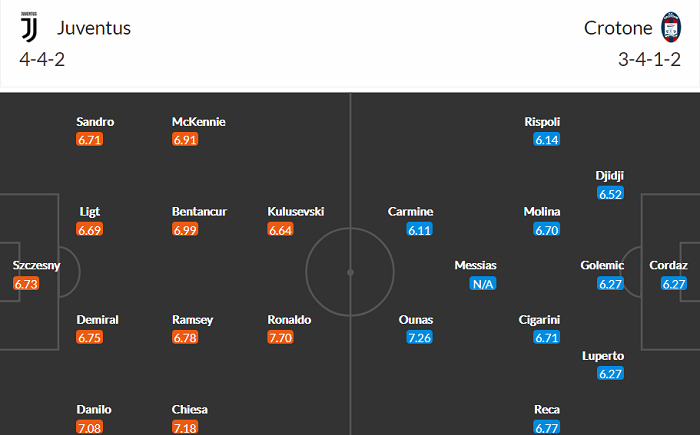 Đội hình dự kiến Juventus vs Crotone