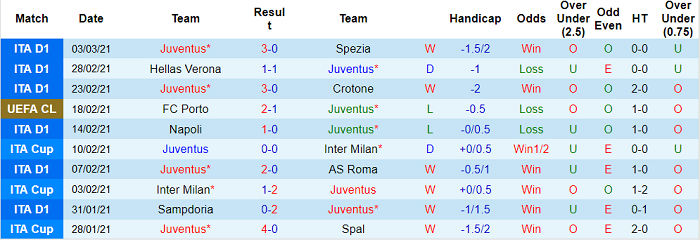 - Thống kê 10 trận gần nhất của Juventus