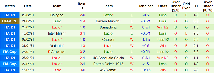 - Thống kê 10 trận gần nhất của Lazio
