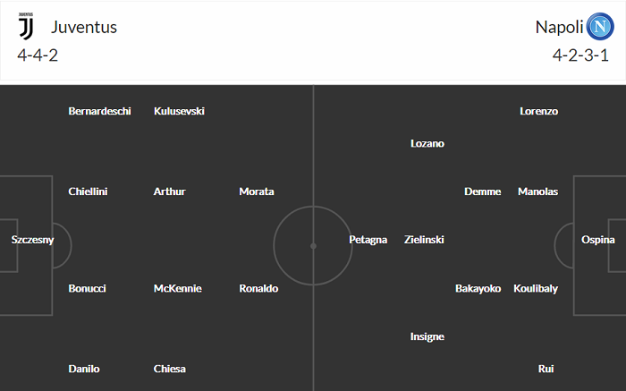 Đội hình dự kiến Juventus vs Napoli