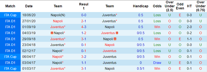 Tỷ lệ kèo Juventus vs Napoli