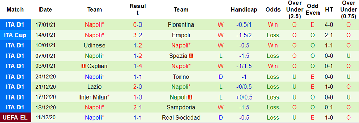- Thống kê 10 trận gần nhất của Napoli