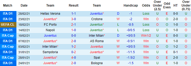 + Thống kê 10 trận gần nhất của Juventus