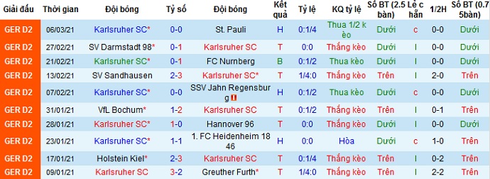 + Thống kê 10 trận gần nhất của Karlsruher