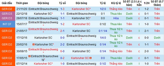 + Lịch sử đối đầu Karlsruher vs Braunschweig
