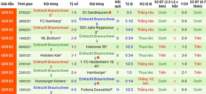 + Thống kê 10 trận gần nhất của Braunschweig