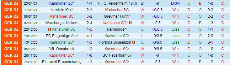 + Thống kê 10 trận gần nhất của Karlsruher