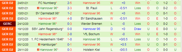 + Thống kê 10 trận gần nhất của Hannover