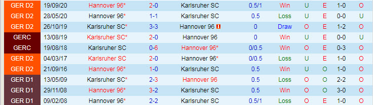 Phong độ và thống kê đối đầu Karlsruher - Hannover gần đây: