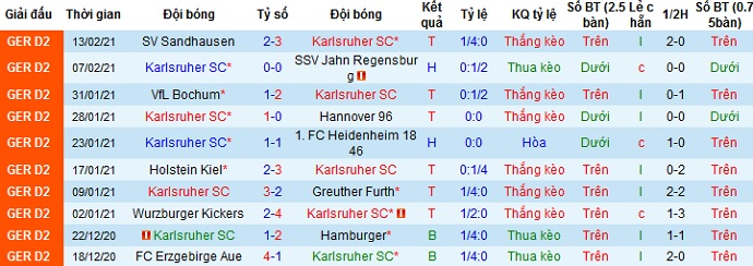 + Thống kê 10 trận gần nhất của Karlsruher