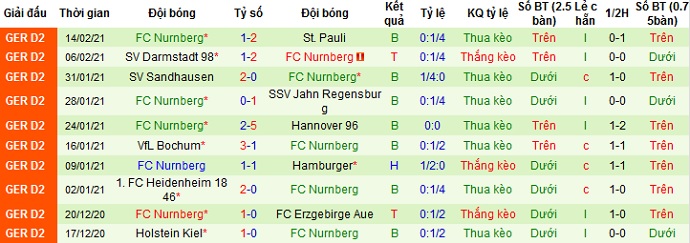 + Thống kê 10 trận gần nhất của Nürnberg