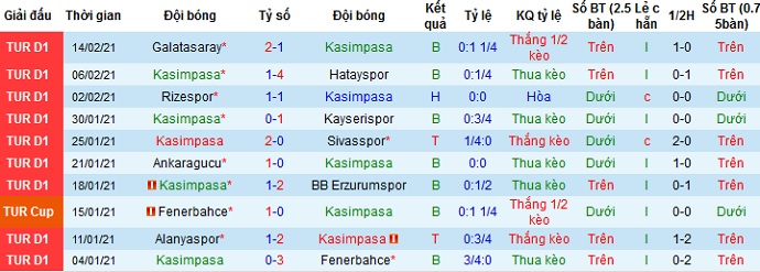 + Thống kê 10 trận gần nhất của Kasımpaşa