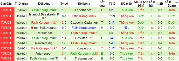 Trong 5 trận gần nhất Fatih Karagümrük có được 3 trận thắng, 1 trận hòa và 1 trận thua. Thành tích sân khách cũng hoàn toàn tương tự nhưng đáng nói là đội bóng đang bất bại trong 4 lần du đấu gần nhất với 3 trận thắng và 1 trận hòa.