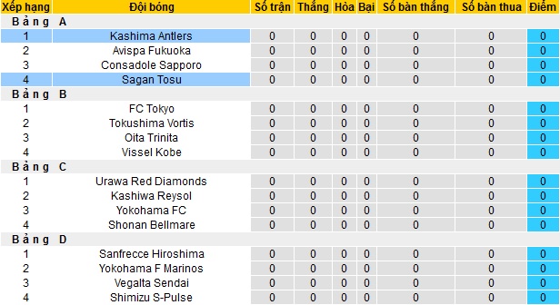 Bảng xếp hạng cúp liên đoàn Nhật Bản