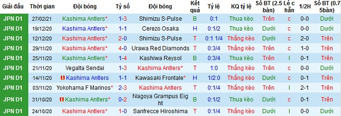 + Thống kê 10 trận gần nhất của Kashima Antlers