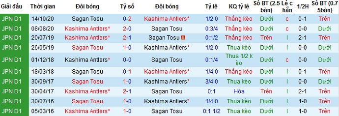 Mặc dù Kashima Antlers đang giành chiến thắng trong cả 3 lần đối đầu gần nhất nhưng phong độ hiện tại của đội bóng là không tốt. Trái lại Sagan Tosu vẫn đang duy trì được chuỗi trận bất bại khá ấn tượng, kể cả trên sân khách nên chọn cửa dưới ở trận đấu này có lẽ vẫn là hợp lý.