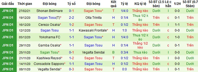 + Thống kê 10 trận gần nhất của Sagan Tosu