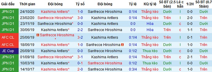 + Lịch sử đối đầu Kashima Antlers vs Sanfrecce Hiroshima