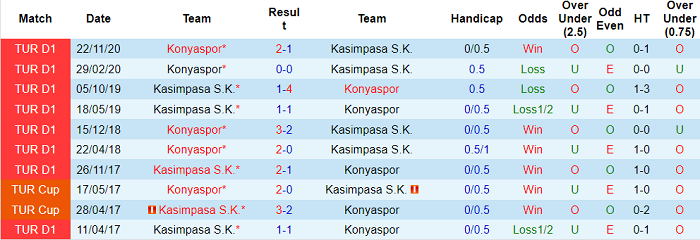 Konyaspor không thua cả 6 lần chạm trán gần nhất thuộc khuôn khổ giải VĐQG Thổ Nhĩ Kỳ trước Kasimpasa. Nhưng mọi thứ hứa hẹn có sự thay đổi vào thứ Hai (15/3). Konyaspor chỉ sở hữu tỷ lệ thắng kèo ở mức 33.33%, thấp thứ hai tại Super Lig mùa này.