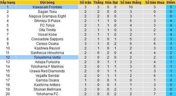Bảng xếp hạng giải VĐQG Nhật Bản vòng 3