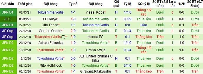 + Thống kê 10 trận gần nhất của Tokushima Vortis