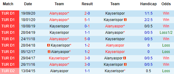 + Lịch sử đối đầu Kayserispor vs Alanyaspor