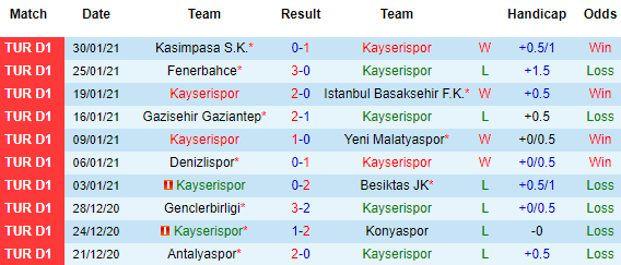 + Thống kê 10 trận gần nhất của Kayserispor