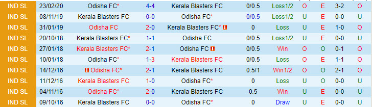 + Lịch sử đối đầu Kerala Blasters vs Odisha