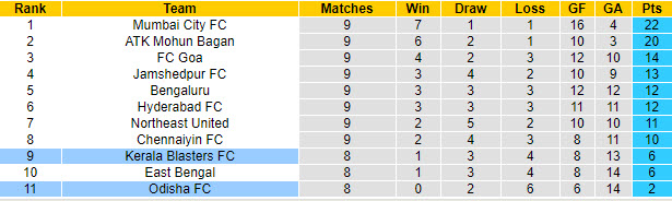 Nên biết, Odisha đang là đội bóng xếp cuối cùng trên BXH và là đội bóng duy nhất chưa từng nếm mùi thắng lợi tại giải VĐQG. Chi tiết, họ chỉ có được 2 trận hoà và nhận tới 6 thất bại sau 8 trận đã đá.