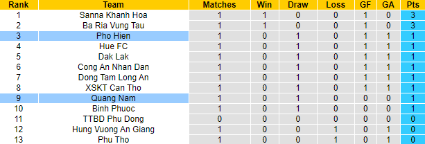 Bảng xếp hạng giải hạng nhất quốc gia 2021