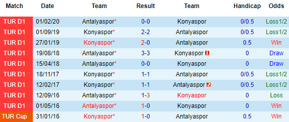 Ở 3 vòng gần nhất, Konyaspor toàn thua trên cả phương diện chuyên môn lẫn tỷ lệ, trong khi bên phía đối diện, Antalyaspor lại có dấu hiệu khởi sắc với 5 trận liên tiếp bất bại ở cả 2 đấu trường là giải VĐQG và Cúp QG. Ngoài ra thì Antalyaspor cũng không thua ở 2 lần chạm trán gần nhất với Konyaspor.