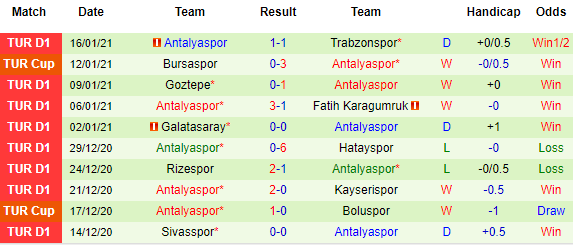 + Thống kê 10 trận gần nhất của Antalyaspor
