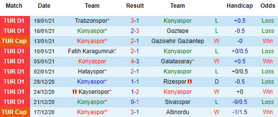 + Thống kê 10 trận gần nhất của Konyaspor