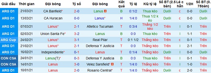 + Thống kê 10 trận gần nhất của Lanús