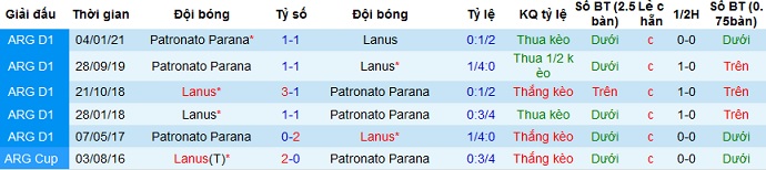 Tỷ lệ kèo Lanús vs Patronato