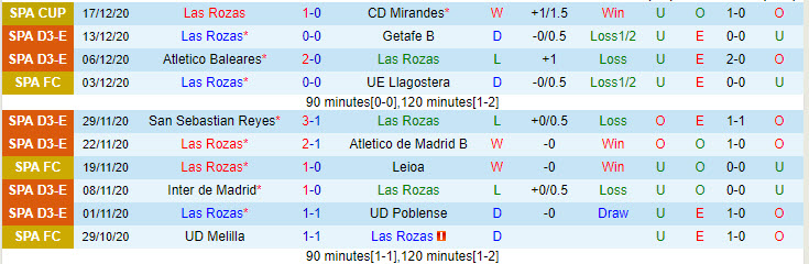 + Thống kê 10 trận gần nhất của Las Rozas