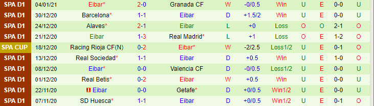 + Thống kê 10 trận gần nhất của Eibar