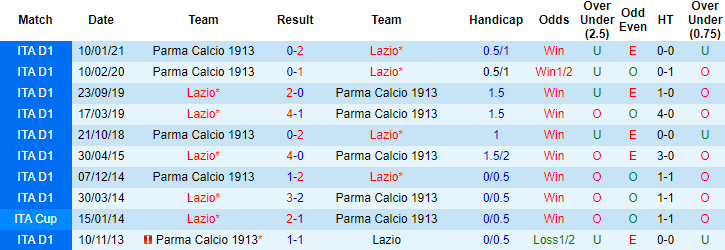 Lazio đang thi đấu vào phom với 3 trận thắng liên tiếp, xé lưới đối phương 7 lần. Trong khi đó 9 trận liên tiếp gần đây Parma không biết đến mùi chiến thắng, thua 7 lần theo kèo châu Á. Đối đầu Parma 9 trận từ năm 2014 đến nay, Lazio toàn thắng cả về kèo châu Á và tỷ số. 8 lần tiếp đón Parma trên sân nhà từ năm 2011, Lazio đều khiến đối thủ phải nhận thất bại.