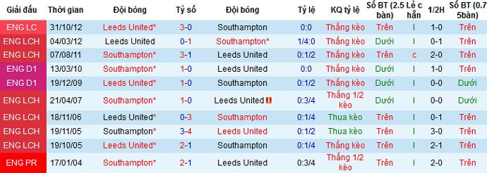 Trong lịch sử đối đầu khi Leeds United được thi đấu trên sân nhà họ cũng chỉ thắng được 3 lần và để thua 2 lần. Tuy nhiên lần gặp nhau gần nhất cũng đã cách đây 8 năm. Hiện tại với phong độ tồi tệ của Southampton nhất là trên sân khách nên chọn cửa trên ở trận đấu này có lẽ vẫn có phần hợp lý.