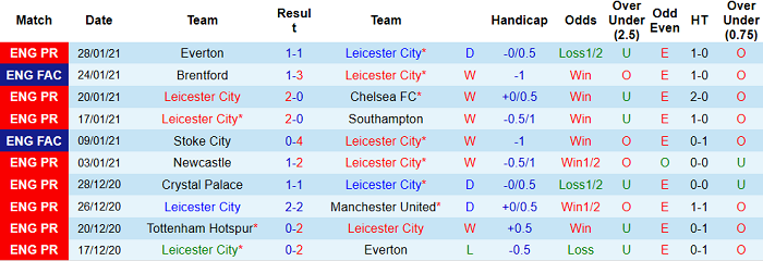 Leicester vẫn duy trì được sự ổn định kể từ thời điểm Giáng sinh và Năm mới (2021). Họ bất bại cả 7 trận gần nhất thuộc khuôn khổ Ngoại hạng Anh và thu về 15/21 điểm tối đa. Thành tích ấy giúp The Foxes vẫn trụ vững trong nhóm 3 đội có thành tích tốt nhất.