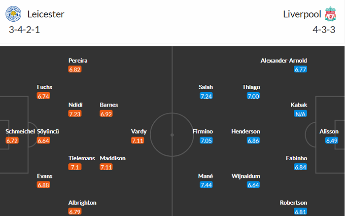 Đội hình dự kiến Leicester vs Liverpool