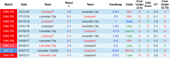 Khả năng giành 3 điểm của Liverpool càng cao khi Leicester mùa này không giỏi trong việc thi đấu trên sân nhà. The Foxes đã phải nhận tới 5 thất bại tại King Power kể từ khi Premier League 2020/21 khởi tranh. Lần ‘tiếp khách’ gần nhất, Leicester cũng để thua Leeds United với tỷ số 1-3.